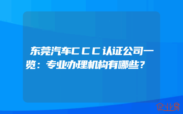 - 东莞汽车CCC认证公司一览:专业办理机构有哪些?