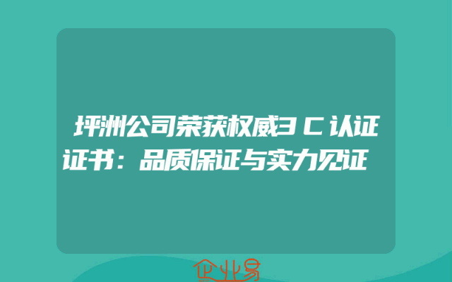 - 坪洲公司荣获权威3C认证证书:品质保证与实力见证