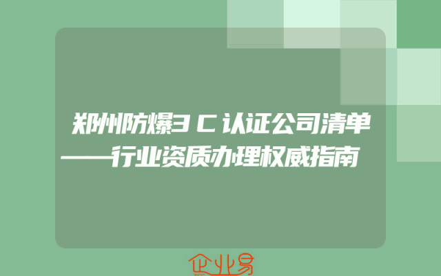 - 郑州防爆3C认证公司清单——行业资质办理权威指南