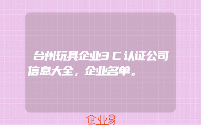 - 台州玩具企业3C认证公司信息大全,企业名单。