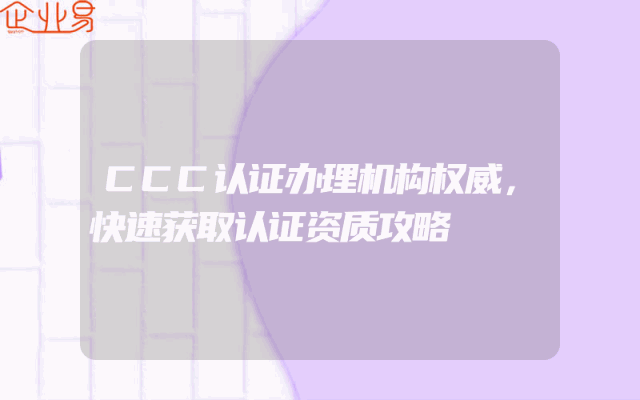 - CCC认证办理机构权威,快速获取认证资质攻略