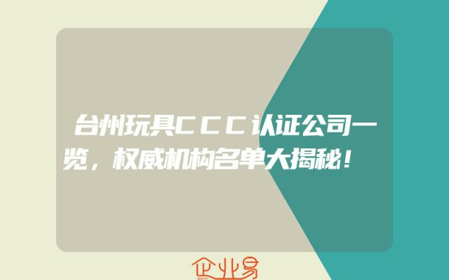 - 台州玩具CCC认证公司一览,权威机构名单大揭秘!