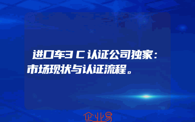 - 进口车3C认证公司独家:市场现状与认证流程。