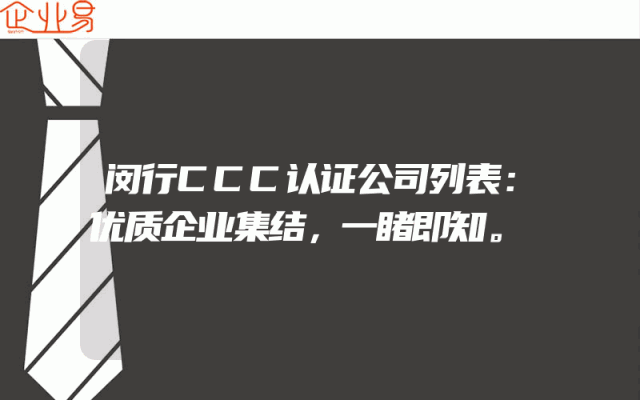 - 闵行CCC认证公司列表:优质企业集结,一睹即知。