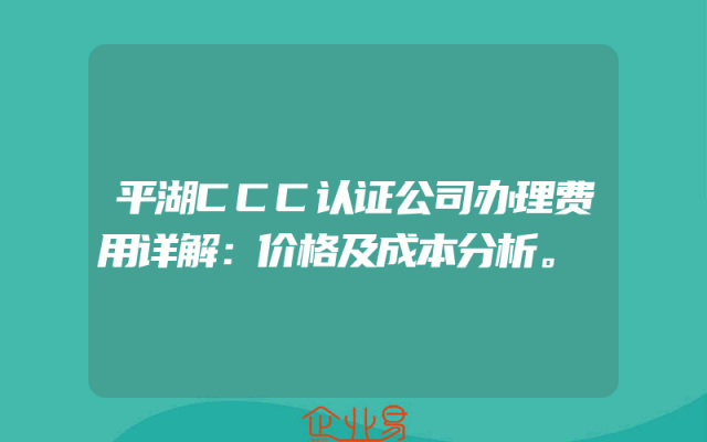 - 平湖CCC认证公司办理费用详解:价格及成本分析。