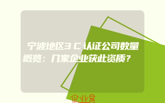 - 宁波地区3C认证公司数量概览:几家企业获此资质?