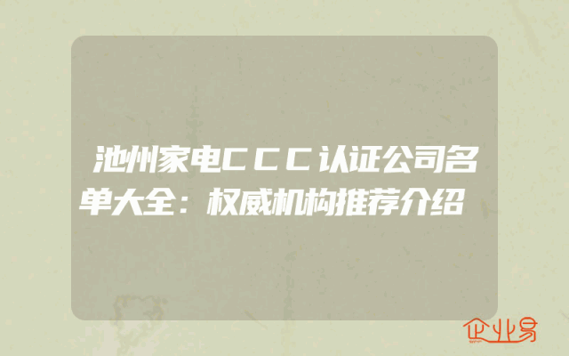 - 池州家电CCC认证公司名单大全:权威机构推荐介绍