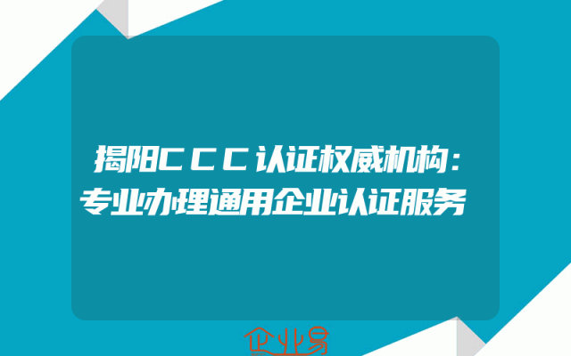 - 揭阳CCC认证权威机构:专业办理通用企业认证服务