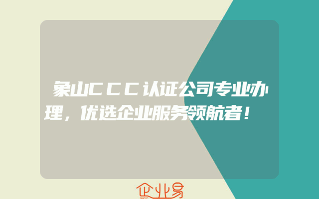 - 象山CCC认证公司专业办理,优选企业服务领航者!一、引言在当今竞争激烈的市场环境下,企业为了拓展业务、提升竞争力,需要确保各项运营活动都符合国家和行业的标准。这其中,认证作为证明企业产品质量和服务水平的重要途径,其重要性不言而喻。象