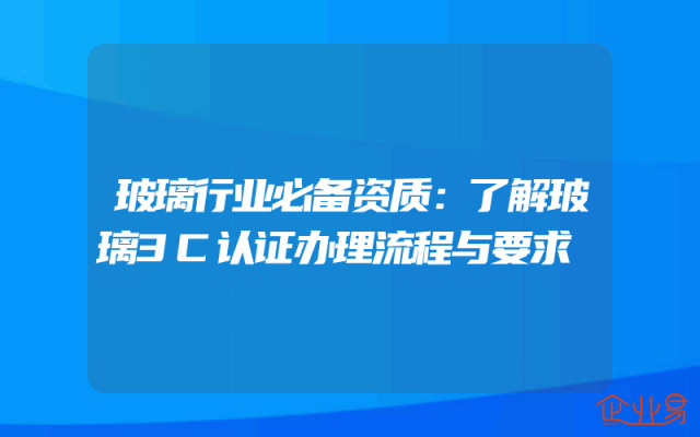 - 玻璃行业必备资质:了解玻璃3C认证办理流程与要求