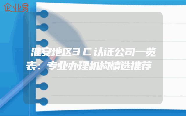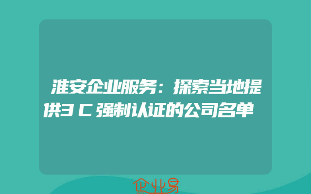 - 淮安企业服务:探索当地提供3C强制认证的公司名单