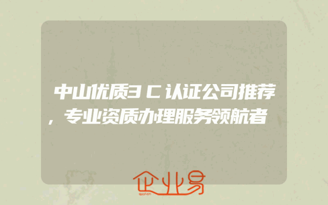 - 中山优质3C认证公司推荐:专业资质办理服务的领航者一、引言随着市场竞争的日益激烈,企业对于资质办理的需求愈发强烈。在中山市,有一家以专业资质办理服务著称的优质公司——中山优质3C认证公司,以其卓越的服务质量和专业的团队赢得了广大企业的信赖和