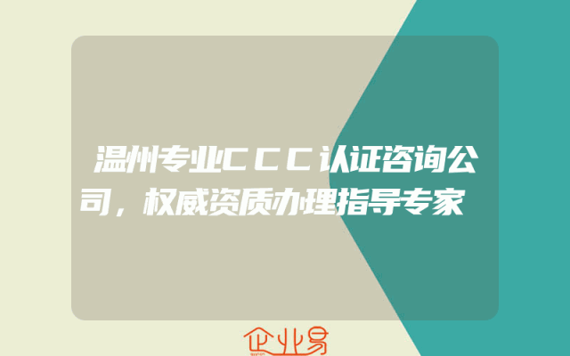 - 温州专业CCC认证咨询公司,权威资质办理指导专家