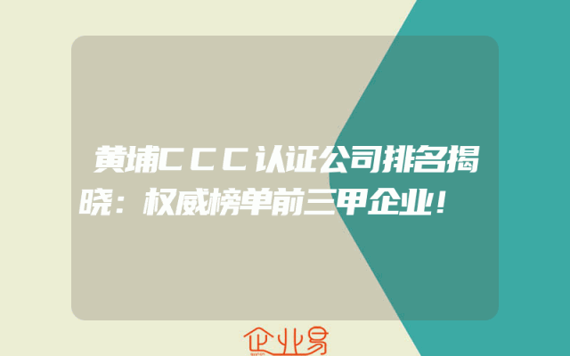 - 黄埔CCC认证公司排名揭晓:权威榜单前三甲企业!
