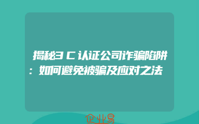 - 揭秘3C认证公司诈骗陷阱:如何避免被骗及应对之法
