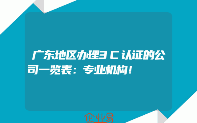- 广东地区办理3C认证的公司一览表:专业机构!