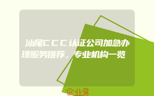 - 汕尾CCC认证公司加急办理服务推荐,专业机构一览