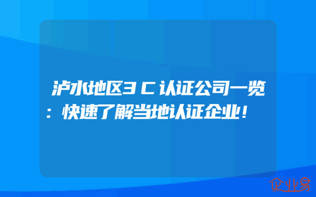 - 泸水地区3C认证公司一览:快速了解当地认证企业!