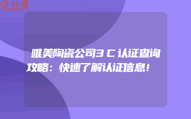 - 唯美陶瓷公司3C认证查询攻略:快速了解认证信息!