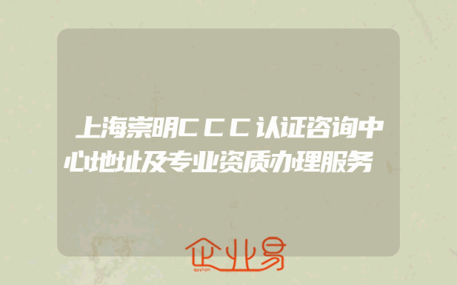 - 上海崇明CCC认证咨询中心地址及专业资质办理服务详解一、上海崇明CCC认证咨询中心地址上海崇明CCC认证咨询中心位于上海市崇明区繁华地段的核心位置,具体的办公地点为:[请在此处填写具体地址]。中心地理位置优越,交通便利,便于企业前来