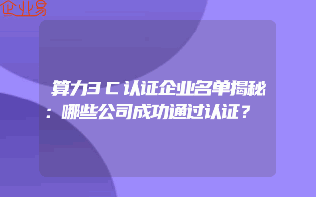 - 算力3C认证企业名单揭秘:哪些公司成功通过认证?
