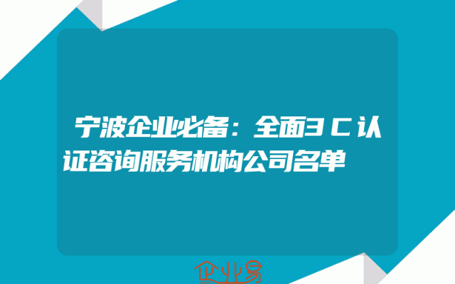 - 宁波企业必备:全面3C认证咨询服务机构公司名单