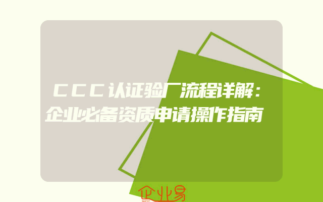- CCC认证验厂流程详解:企业必备资质申请操作指南