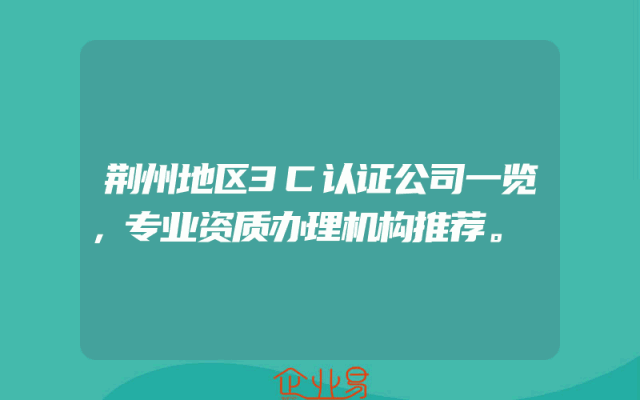- 荆州地区3C认证公司一览,专业资质办理机构推荐。