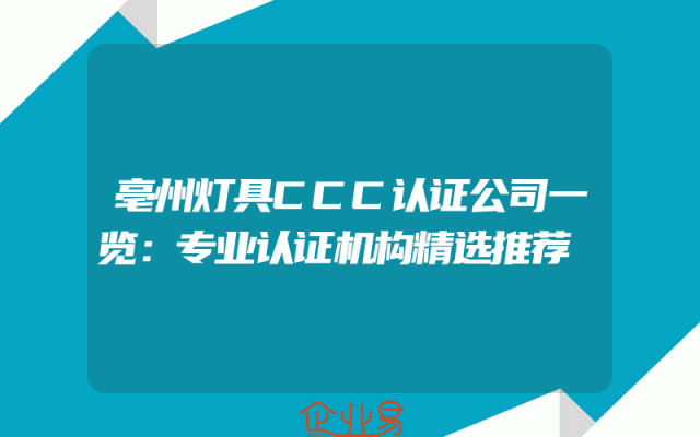 - 亳州灯具CCC认证公司一览:专业认证机构精选推荐