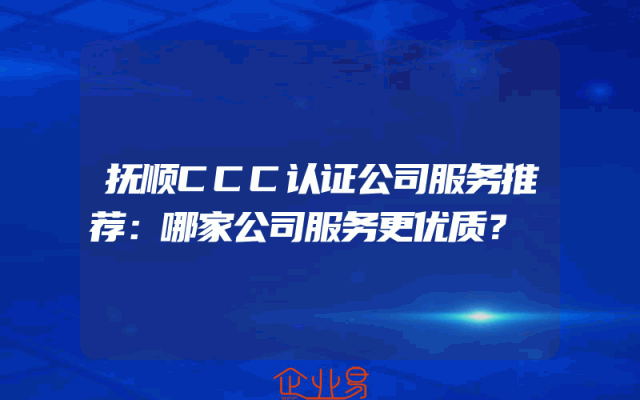 - 抚顺CCC认证公司服务推荐:哪家公司服务更优质?