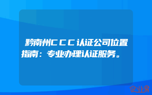 - 黔南州CCC认证公司位置指南:专业办理认证服务。