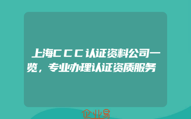 - 上海CCC认证资料公司一览,专业办理认证资质服务