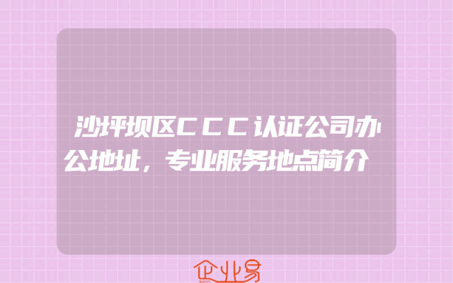 - 沙坪坝区CCC认证公司办公地址,专业服务地点简介