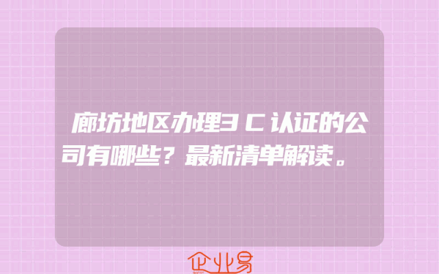 - 廊坊地区办理3C认证的公司有哪些?最新清单解读。