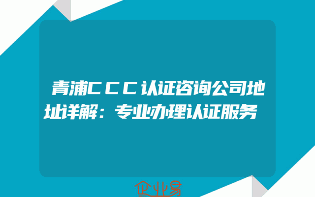 - 青浦CCC认证咨询公司地址详解:专业办理认证服务