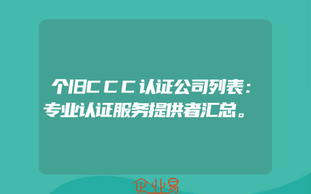 - 个旧CCC认证公司列表:专业认证服务提供者汇总。