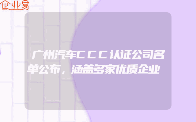 - 广州汽车CCC认证公司名单公布,涵盖多家优质企业