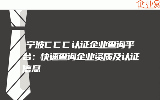- 宁波CCC认证企业查询平台:快速查询企业资质及认证信息