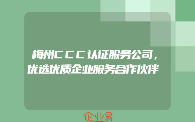 - 梅州CCC认证服务公司,优选优质企业服务合作伙伴