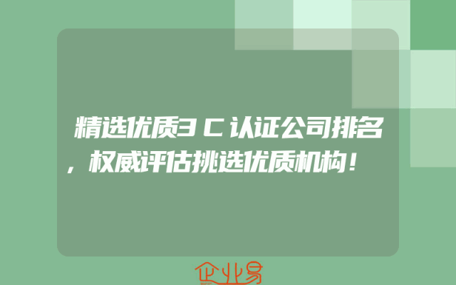 - 精选优质3C认证公司排名,权威评估挑选优质机构!