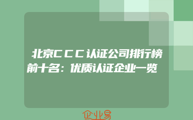 - 北京CCC认证公司排行榜前十名:优质认证企业一览