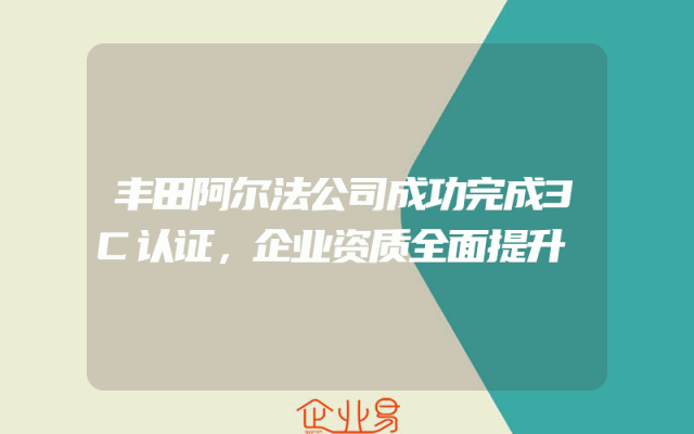 - 丰田阿尔法公司成功完成3C认证,企业资质全面提升