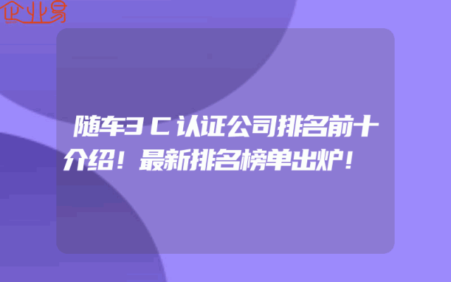 - 随车3C认证公司排名前十介绍!最新排名榜单出炉!
