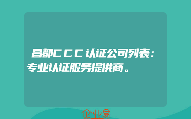 - 昌都CCC认证公司列表:专业认证服务提供商。