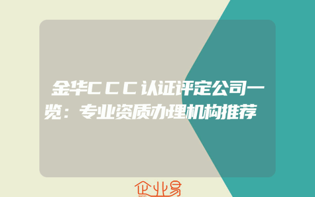 - 金华CCC认证评定公司一览:专业资质办理机构推荐