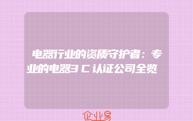 - 电器行业的资质守护者:专业的电器3C认证公司全览