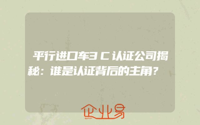 - 平行进口车3C认证公司揭秘:谁是认证背后的主角?