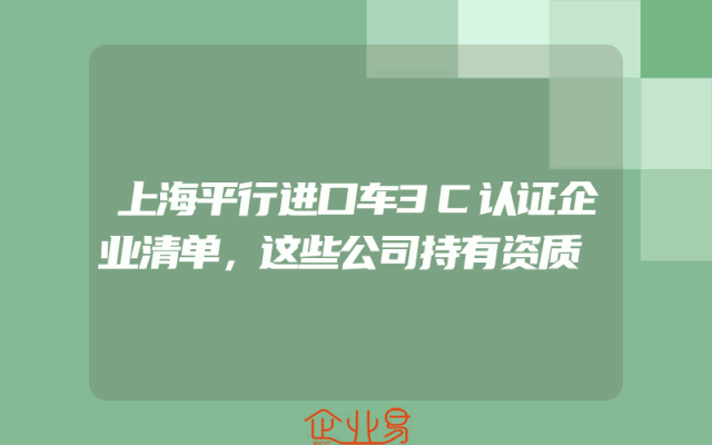 - 上海平行进口车3C认证企业清单,这些公司持有资质