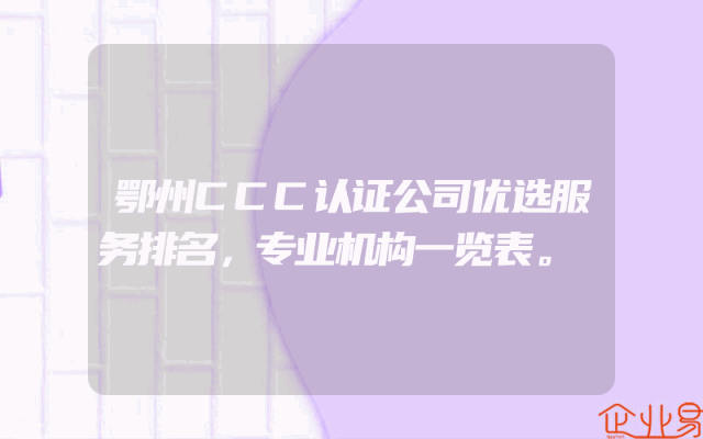 - 鄂州CCC认证公司优选服务排名,专业机构一览表。