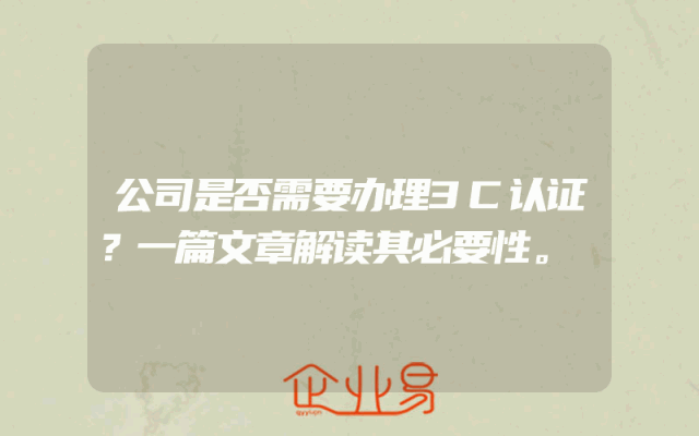 - 公司是否需要办理3C认证?一篇文章解读其必要性。